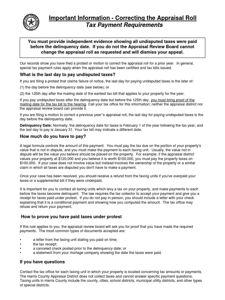 Harris County Appraisal District How To Protest Property Taxes
