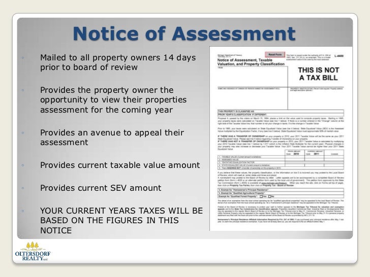 Notice Of Assessment 101 Michigan Property Tax Law