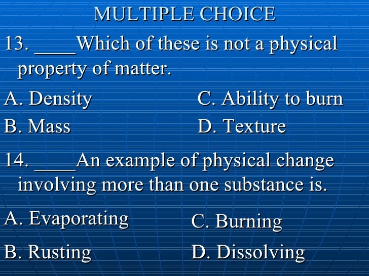 Properties Of Matter Physical Chemical Changes Ppt Download